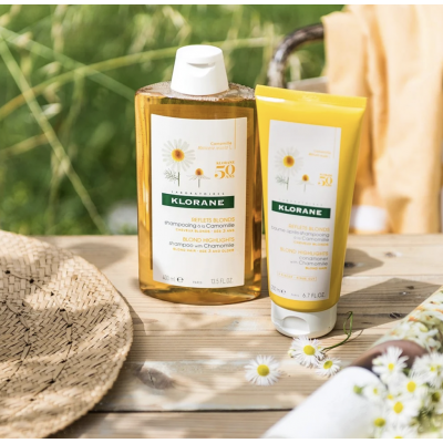 Para un efecto más luminoso, usar de forma regular junto con el Champú a la Manzanilla Klorane.