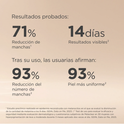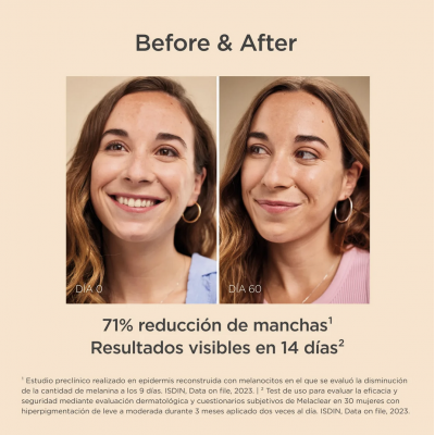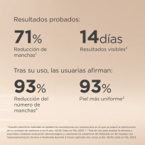 Reducción de manchas: Disminuye visiblemente las manchas oscuras en tan solo 14 días, con una reducción del 63% en 3 meses.