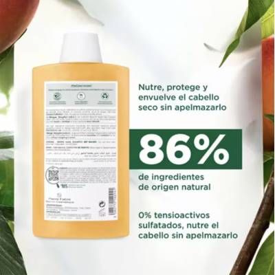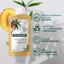 El Klorane Champú a la Manteca de Mango es un champú nutritivo y protector, especialmente formulado para cabellos secos, ásperos o dañados. Enriquecido con manteca de mango, rica en ácidos grasos esenciales, nutre intensamente la fibra capilar, devolviendo suavidad, flexibilidad y un acabado sedoso. Su fórmula cremosa limpia suavemente sin apelmazar, aportando confort y protección frente a agresiones externas como el calor, el sol o los tratamientos químicos.