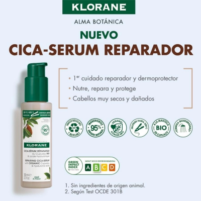 Klorane Sérum Reparador Cupuaçu 100ml repara y nutre intensamente el cabello seco o dañado. Su fórmula con manteca de cupuaçu devuelve suavidad, brillo y elasticidad. Ideal para uso frecuente, deja el cabello sedoso, fuerte y fácil de desenredar.