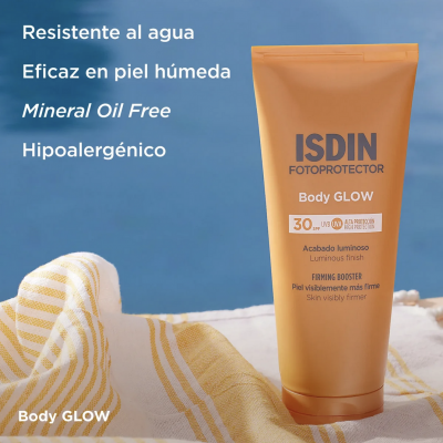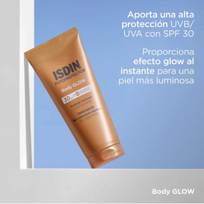 Isdin Fotoprotector Body Glow SPF30 200ml es una excelente opción para quienes buscan proteger su piel del sol mientras le aportan un brillo natural y mejoran su firmeza.