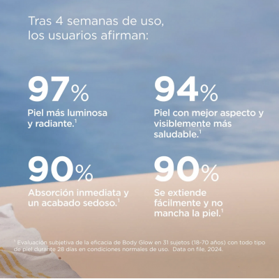 Loción corporal con protección solar SPF30 que hidrata, reafirma y aporta un brillo glow natural inmediato. Su fórmula ligera y de rápida absorción deja la piel luminosa y sedosa, ideal para uso diario en todo tipo de pieles
