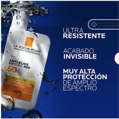 La Roche‑Posay Anthelios UVMUNE 400 Fluido Invisible SPF 50+ – 50 ml: Protector solar facial de alta protección SPF 50+ con tecnología Mexoryl 400 y XL‑PROTECT para proteger del daño celular profundo, incluido el espectro UVA largo, UVB, infrarrojos y la polución.