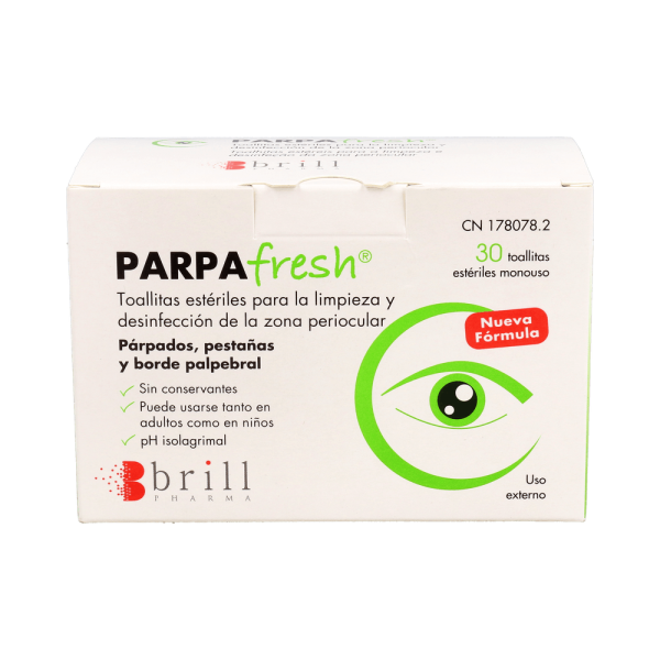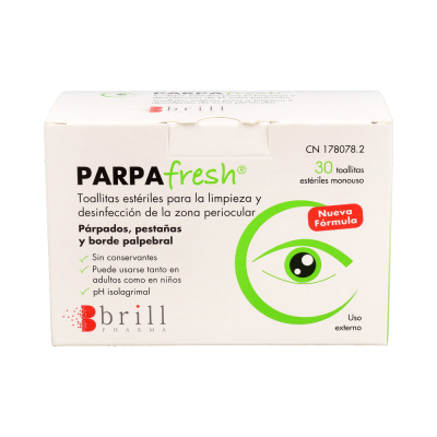Parpafresh Toallitas Limpieza Párpados 30udsSon unas toallitas para la limpieza y desinfección de la zona ocular. Aportan una limpieza suave además de retirar las secreciones mucosas y las escamas secas o de grasa. Compuesto por productos naturales como extractos glicólicos de Aloe y de Malva que ayudan a aportar una acción refrescante, suavizante y limpiadora. Indicadas para limpiar la zona ocular.