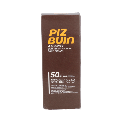 Piz Buin® Allergy SPF50+ crema es un protector solar facial específicamente desarrollado para cuidar y proteger las pieles sensibles al sol. Gracias a su textura en crema, se absorbe rápidamente en la piel del rostro. Por su composición, Piz Buin Allergy SPF50+ crema ofrece a la piel un aporte superior de hidratación que le permite calmarla y mantenerla suave, sedosa y protegida. Además, sus filtros solares 50+ ayudarán a tu piel a protegerse del envejecimiento cutáneo, de las quemaduras y las rojeces.